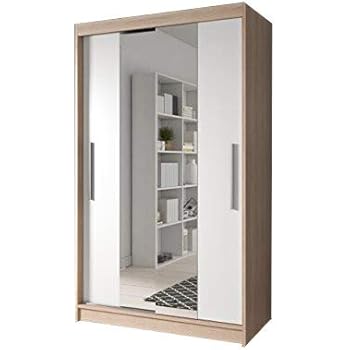 Armoire Penderie Avec Etageres Miroir Portes Coulissantes Noah 01