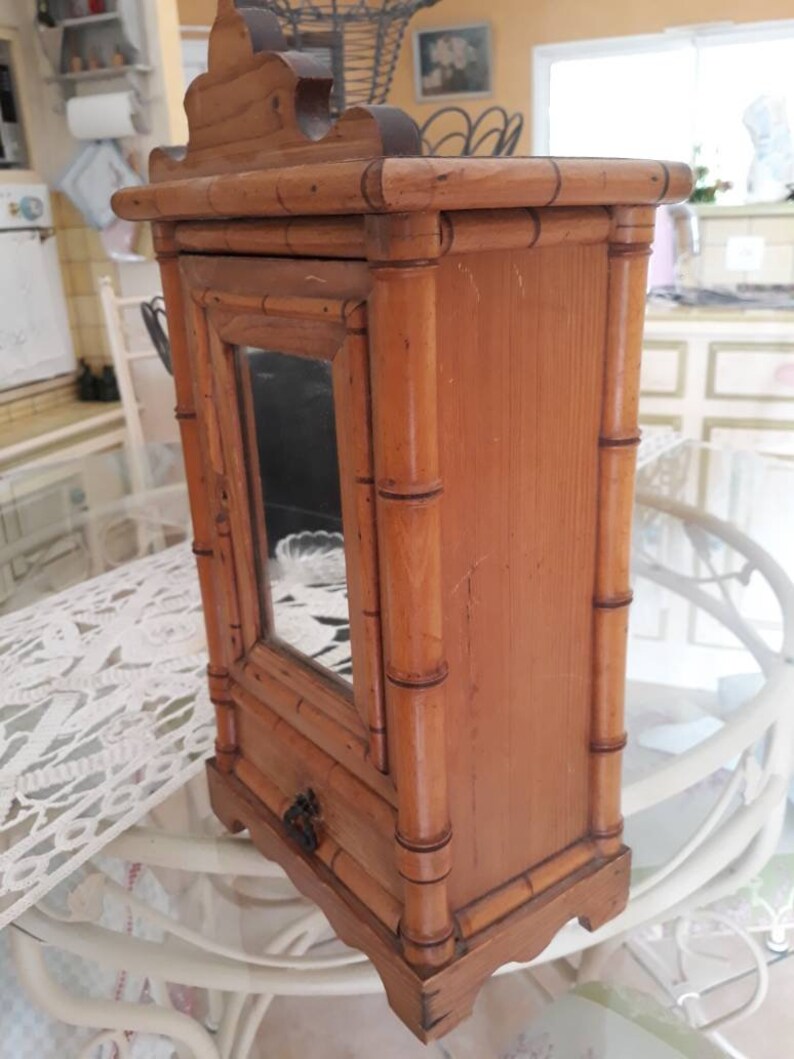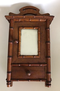 Ancienne Armoire De Poupee Decor Bambou Miroir Et Tiroir En Bas Ebay