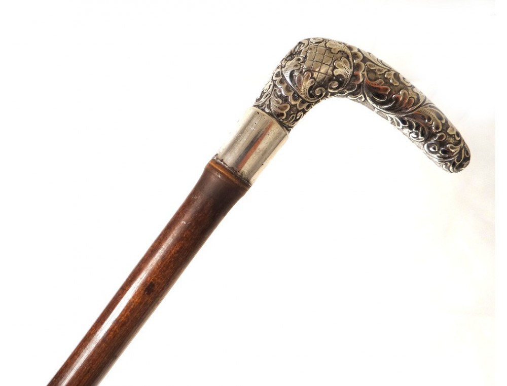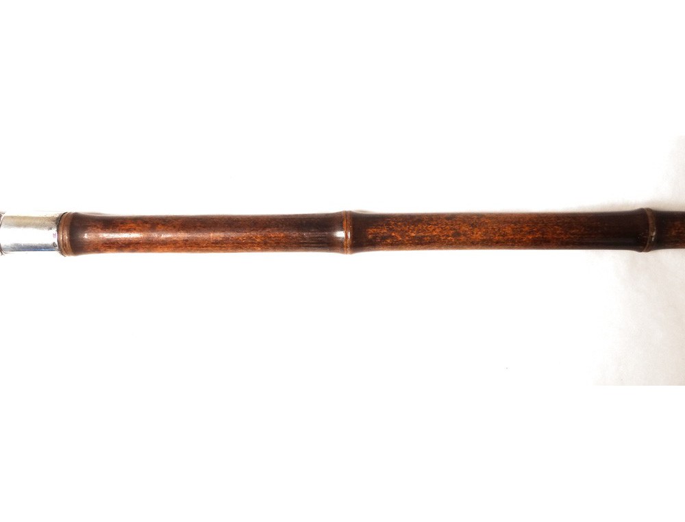 Canne Ancienne Pommeau Argent Massif Bois Bambou Antique Cane Xixe