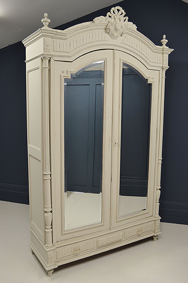 Antique White French 3 Door Mirror Wardrobe Armoire French