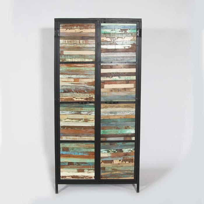 Moire Vintage Industrielle Bois Colore Achat Vente Armoire