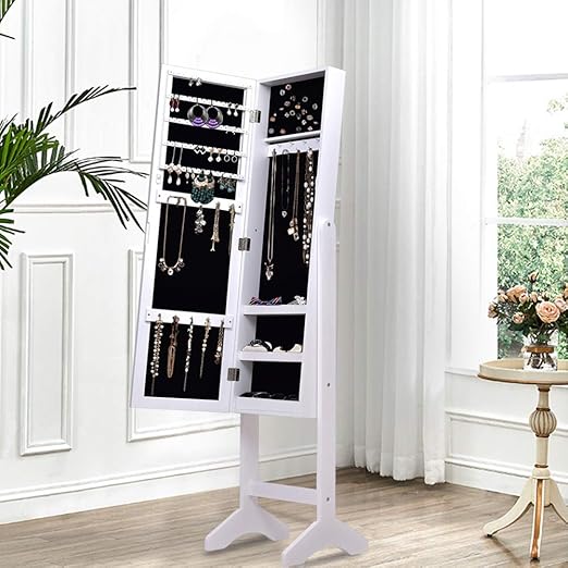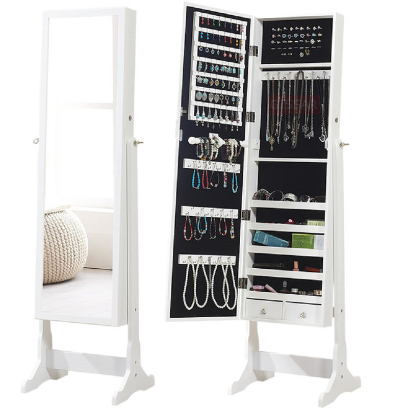 Langria Lockable Standing Jewelry Cabinet Full Length Mirrored