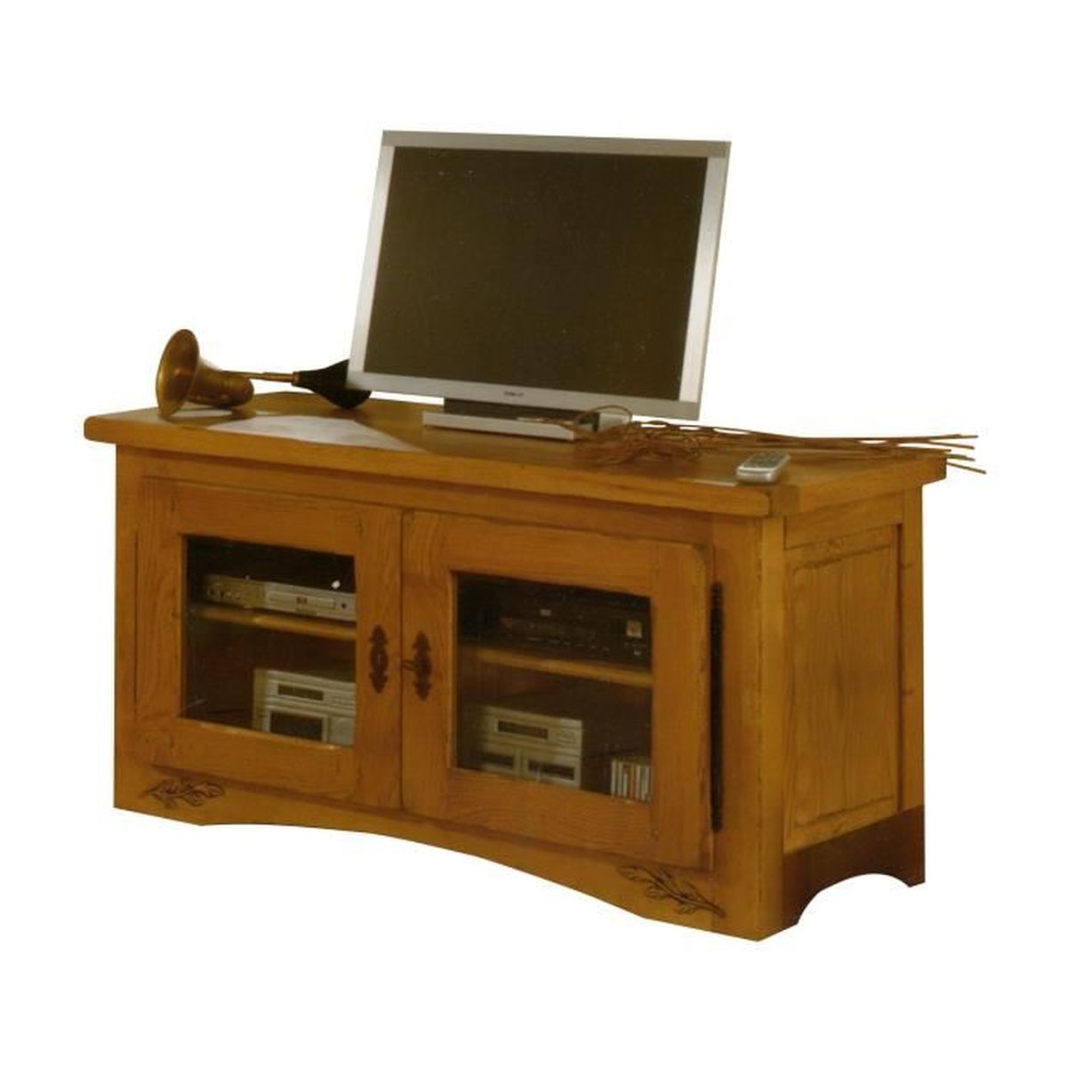 Meuble Tv 2 Portes Vitrees En Chene Massif Orge Achat Vente