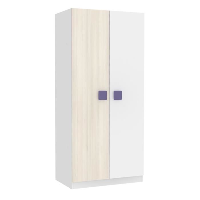 Armoire Enfant Coloris Acacia Blanc Violet Avec 2 Portes En Mdf