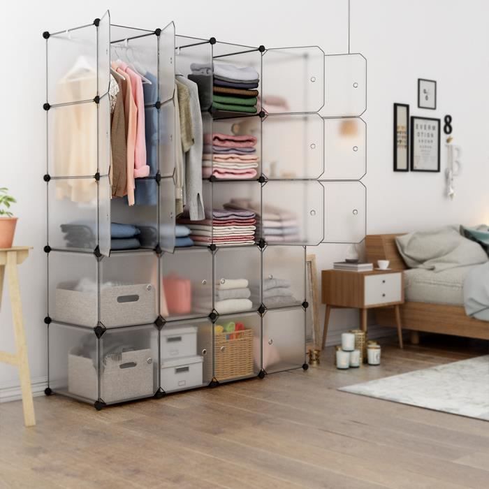 Langria Armoire Penderie 20 Cubes Placard Garde Robe Etageres