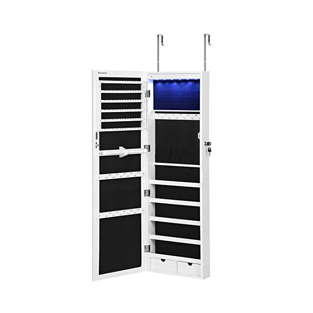 Songmics 6 Led Miroir Bijoux Cabinet Verrouillables Mur Porte