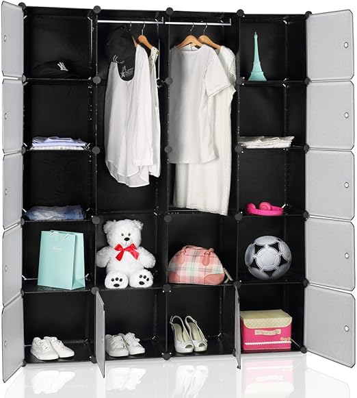 Armoire Etagere Modulable En Plastique Noir 16 Casiers Penderies