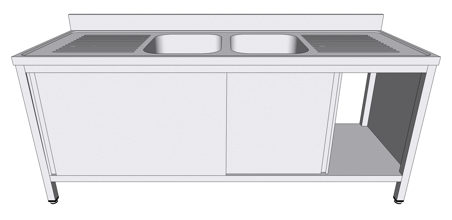 Plonge Inox Sur Armoire A Portes Coulissantes 2 Bacs Centraux 2
