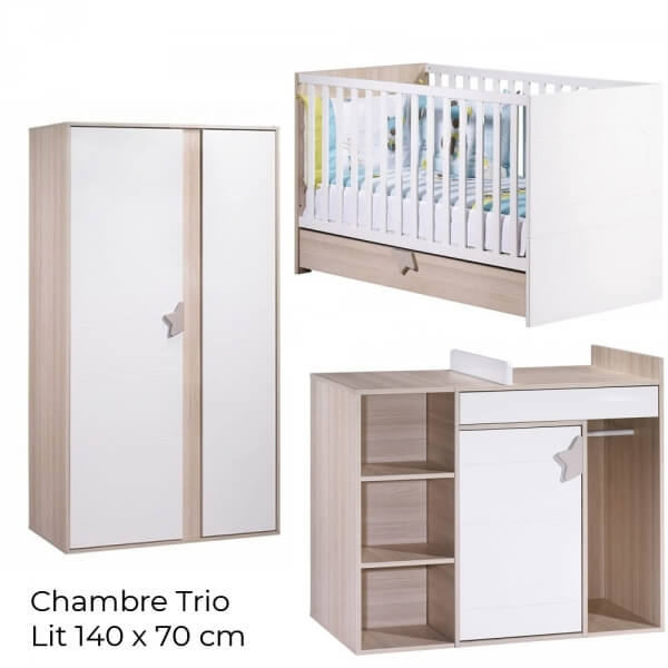 Sauthon Meubles Chambre Trio Lit Little Big Bed 140 X 70 Commode