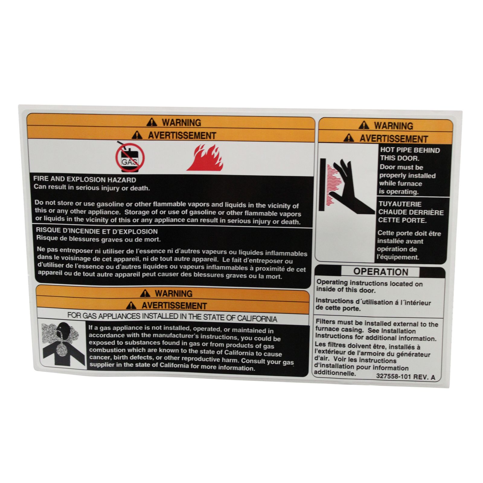 Factory Authorized Parts 327558 101 Stickers Carrier Hvac