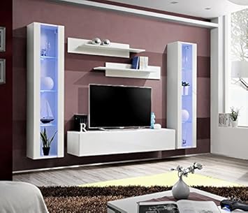 Ensemble Meuble Tv Mural Fly O5 260 X 40 X 190 Cm Blanc Et