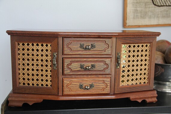 Small Wooden Jewelry Cabinet With Drawers Vintage Jewelry Etsy