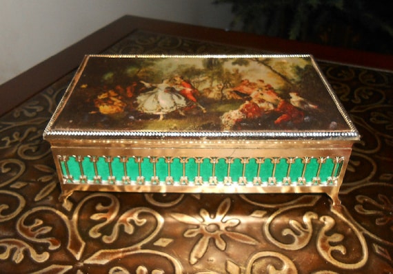 Jewelry Box Vintage Victorian Gold Burgundy Green Cream Etsy