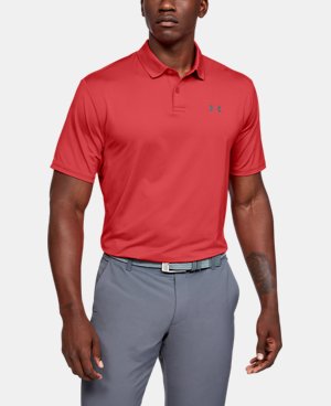 Under Armour Mens Tech Performance Golf Polo Shirt Red Hotgolf