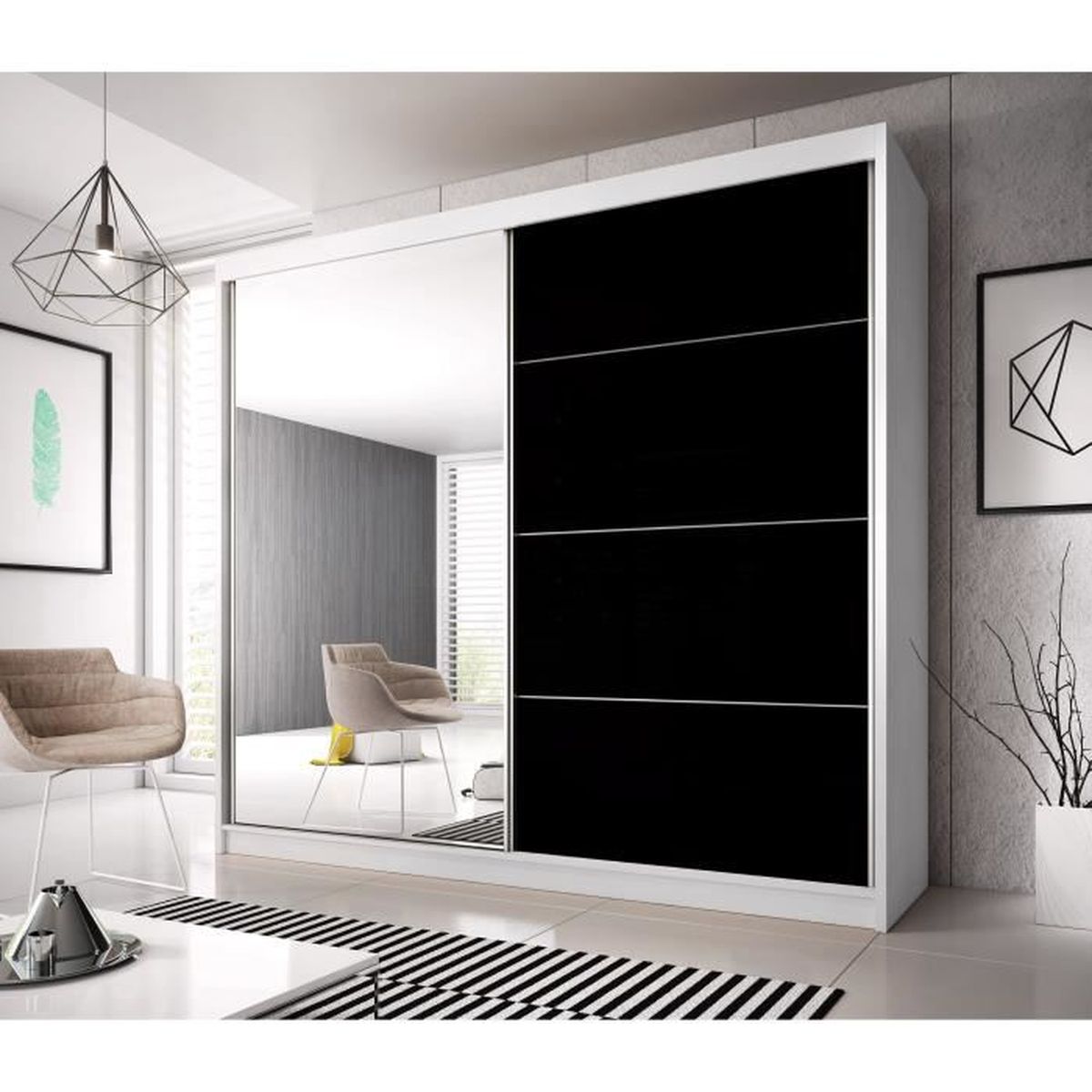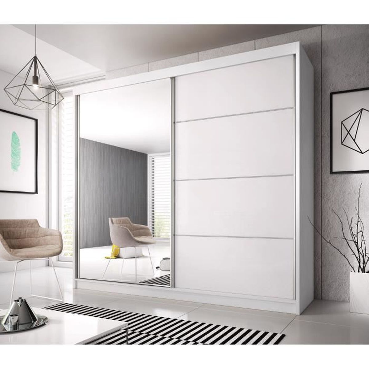 Armoire Contemporaine 2 Portes Coulissantes Avec Miroirs Charlotte