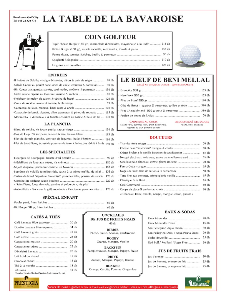 La Table De La Bavaroise Casablanca Menu Livraison A Domicile La