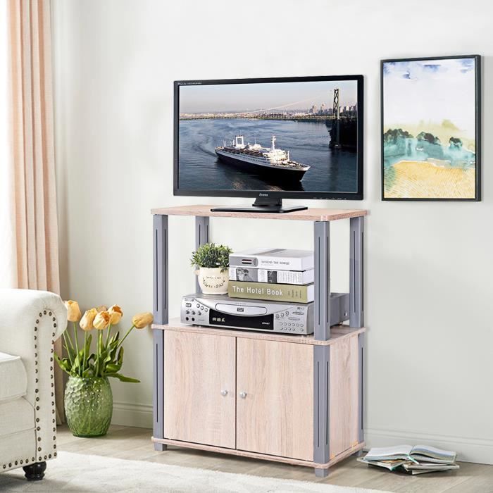 Costway Meuble Tv Armoire De Television En Bois Etagere A 3