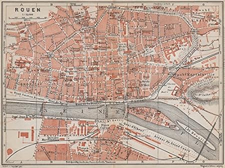 Town City Antique Plan De La Ville De Rouen Seine Maritime Carte
