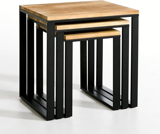 Lot De 3 Tables Basses Gigognes En Acier Hiba Noir La Redoute