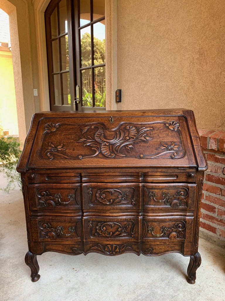 French Carved Oak Secretary Desk Bureau Drop Front Table Louis Xv