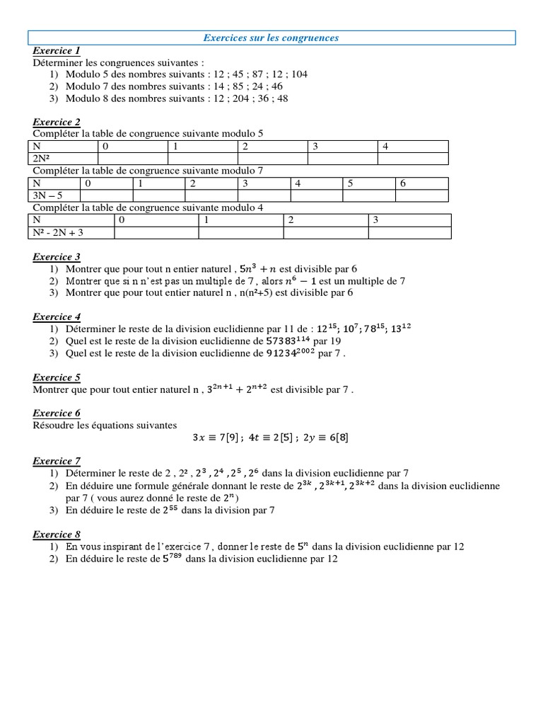 Exercices Congruences Mathematiques Discretes Mathematiques