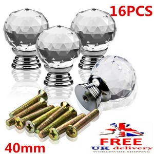 16pcs 40mm Diamant Cristal Bouton De Porte En Verre Pour Cuisine