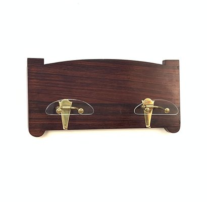 Porte Manteau Mural Bois Skai Laiton Verre Italie Annees 60