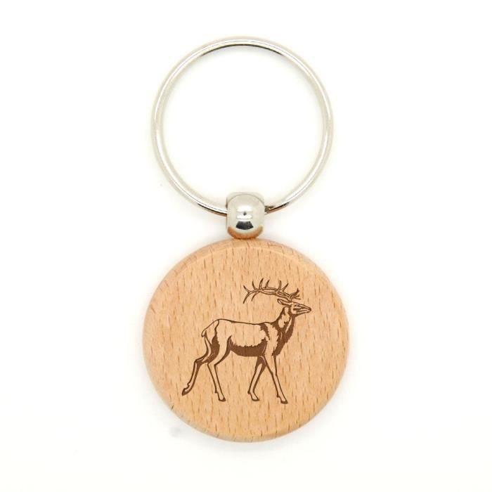 Porte Cle En Bois Grave Cerf Rond Achat Vente Porte Cles