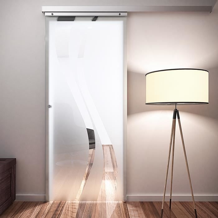 Porte Coulissante Interieure En Verre Depoli 90 X 208 Cm Porte