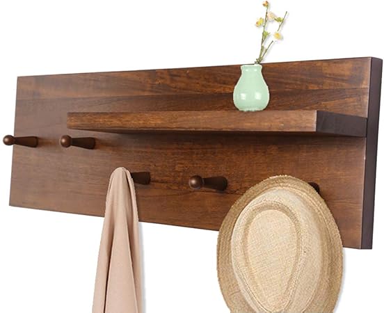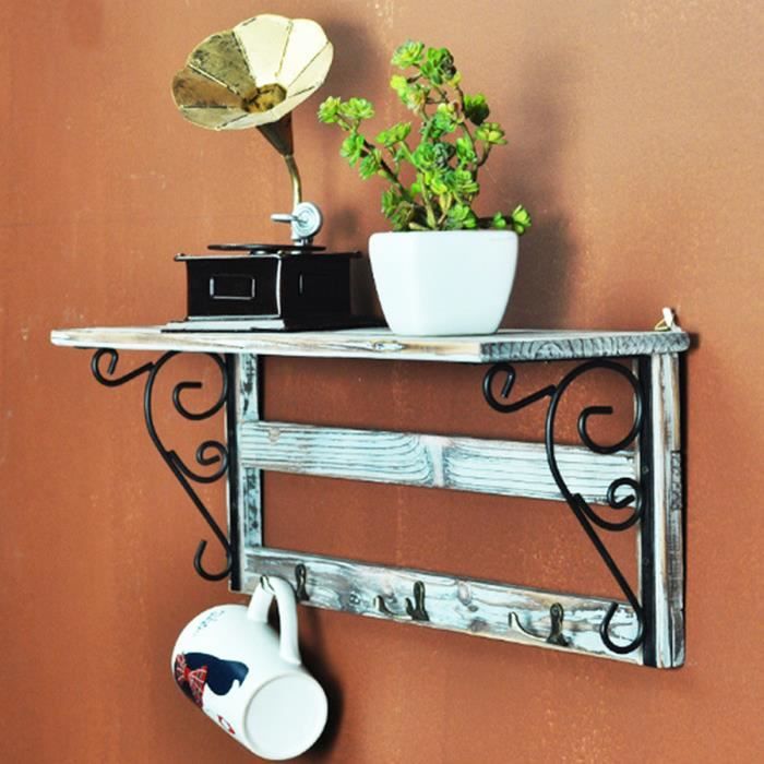 Vintage Porte Manteau Mural En Bois Etagere Murale Avec 5 Crochets