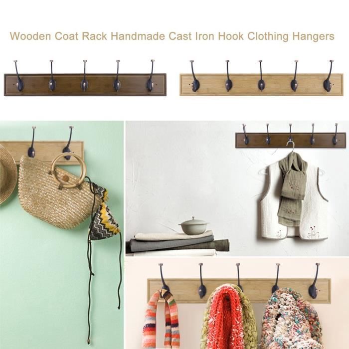 5 Crochets Porte Manteau Mural En Bois Metal Vintage Rack De