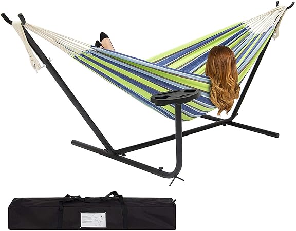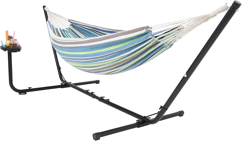 Vita5 Hamac Double En Coton Avec Support Avec Porte Gobelet