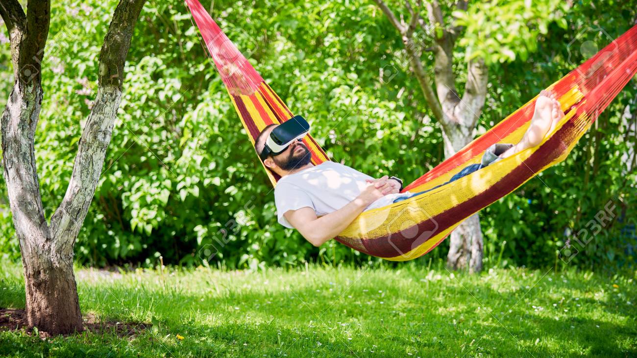 Jeune Homme Barbu Qui Porte Des Lunettes De Realite Virtuelle Qui