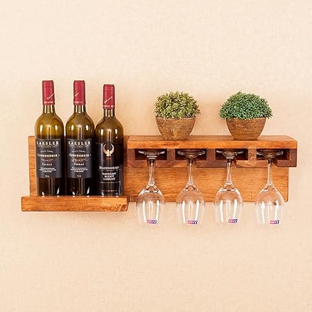 32 Rustic Wood Wine Rack Shelf Stemware Glass Holder Unique
