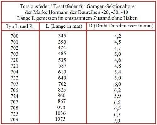 L700 Ressort De Porte Sectionnelle Hormann Nombre Garanti D