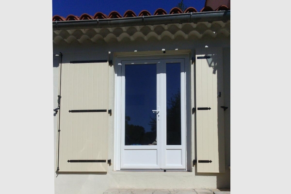 Vue Exterieure Porte Fenetre Blanche Volets Battants Alu Verts