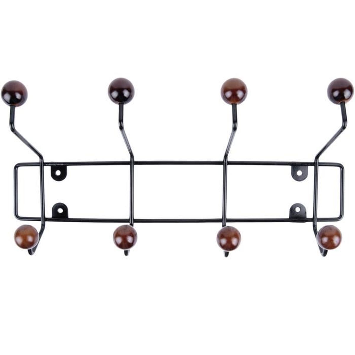 Porte Manteau Mural Metal Noir Boules Bois Couleur 8 Pateres