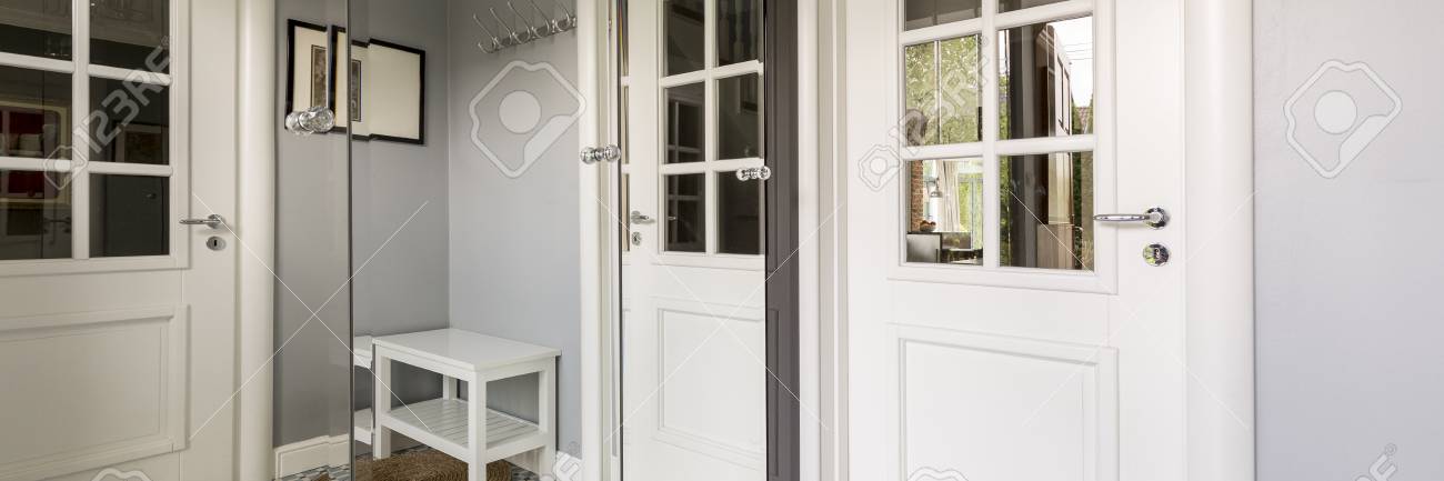 Entrance Corridor With A Mirror And A Glass Door To The Rest
