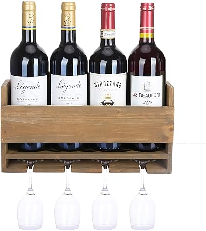 4 Bouteilles En Bois Mural Verre A Vin Et Porte Bouteille