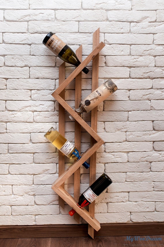 Support A Bouteille Mural En Bois Naturel Original Design Etsy