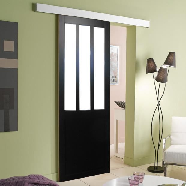 Porte Coulissante Atelier Vitree Atelier Noir H 204 X L 83 Cm