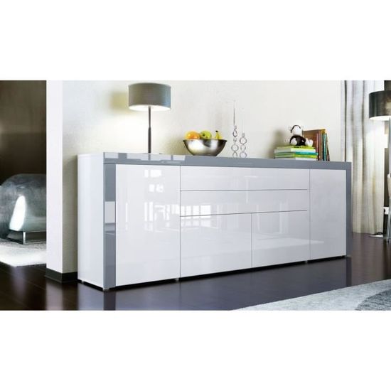 Buffet Enfilade Blanc Au Contour Gris 200 Cm Achat Vente