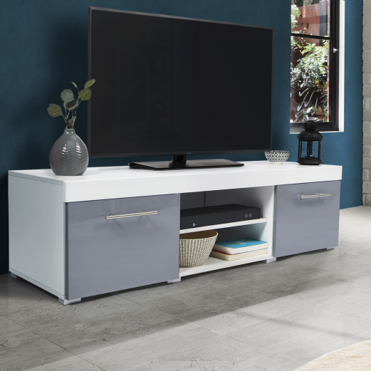 Meuble Tv Contemporain Portland Bois Blanc Gris Laque