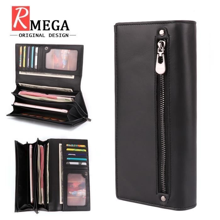 Rmega Portefeuille Femme De Luxe Cuir Veritable Double