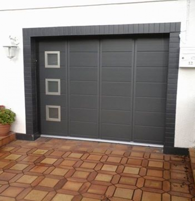Porte De Garage Coulissante Laterale Lisse Grise Anthracite