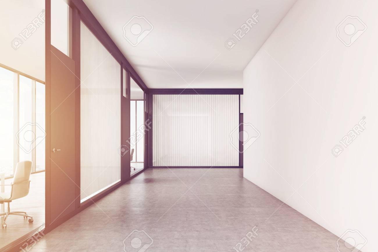 Blank Vide Et Couloir De Bureau Avec Des Murs Blancs Et De Verre