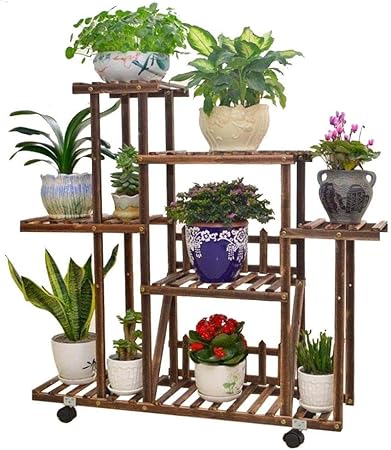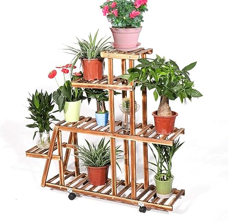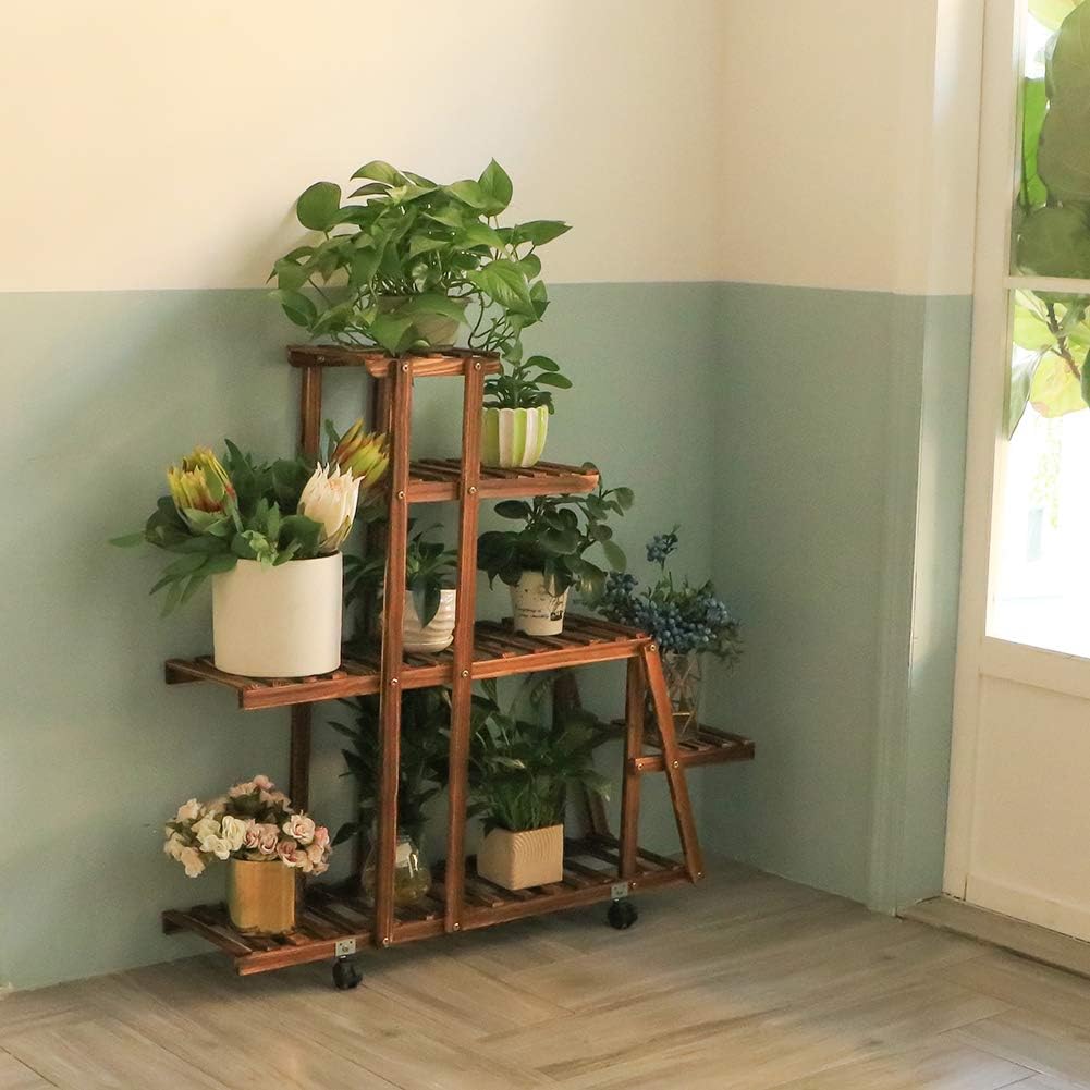 Unho Etagere A Fleurs Bois A Roulettes De 5 Niveaux Porte Plante