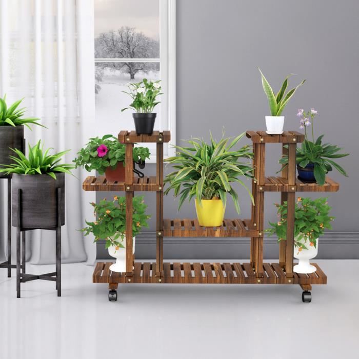 Unho Etagere A Fleurs En Bois A Roulettes Porte Plante Interieur