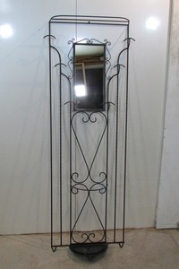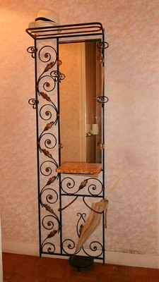 Ancien Porte Manteau Mural En Fer Forge Avec Miroir Patere