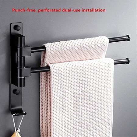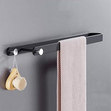 Ydmj Noir Rotatif Barre De Serviette Avec Crochet Espace Aluminium